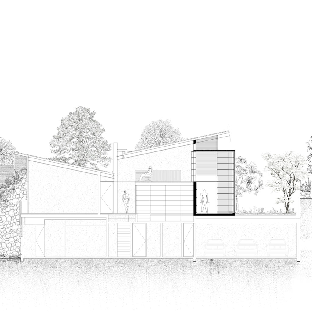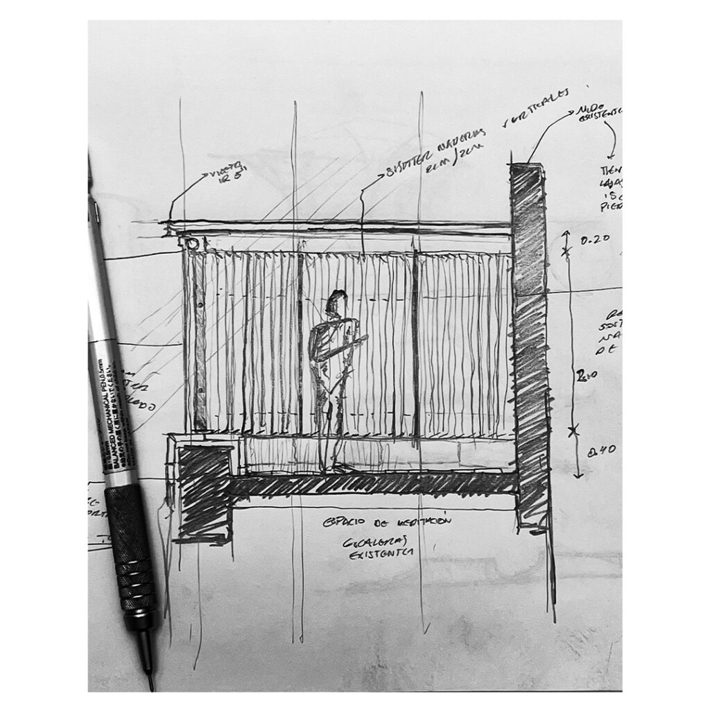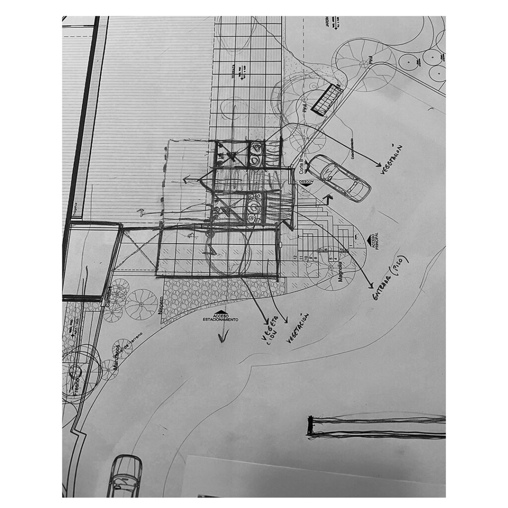La propuesta consistió en la demolición total del vestíbulo existente, reutilizando los cimientos originales: una caja de acero sobre el estacionamiento, sostenida por una losa reticular sin trabes. Se elevó el volumen a doble altura, respetando la volumetría de la vivienda diseñada en 2003 por Legorreta y Pablo Sepúlveda Yturbe.